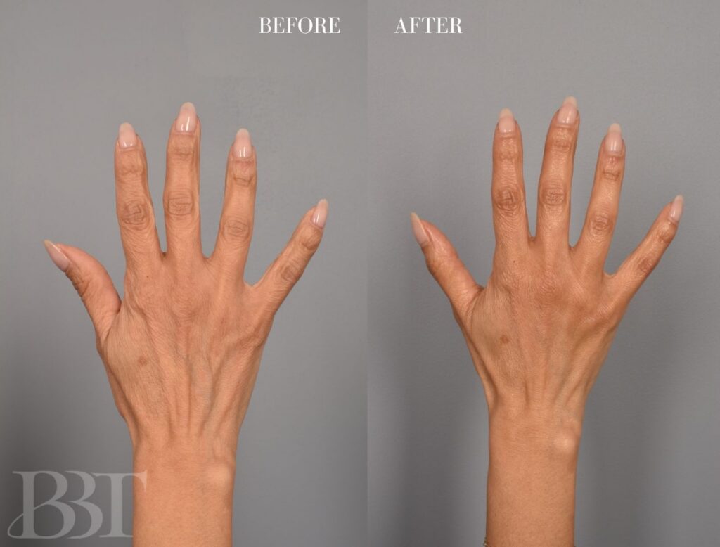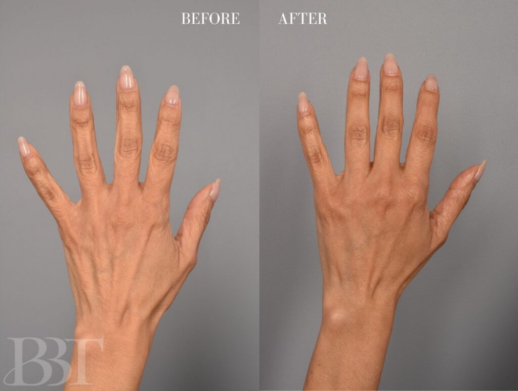 This 45 year old athletic and thin patient has always wanted to rejuvenate her hands by adding some volume. She did not like how her tendons and veins were showing and the early telltale signs of aging. She had previous injections of Radiesse to her hands, however her results were not lasting long term. Although she noticed mild improvements previously, she was interested in a more durable, long term result that is more permanent.