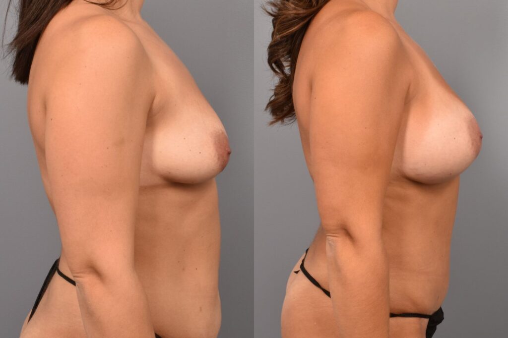 She underwent liposuction of her abdomen, waist and back with tummy tuck and a breast augmentation surgery with implants half under the muscle.